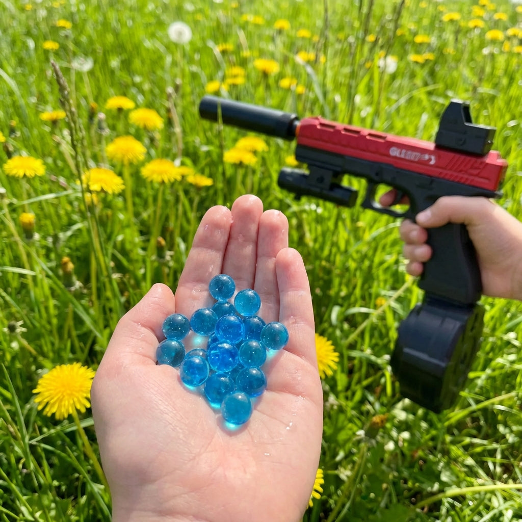 Tak, pistolety żelowe wykorzystują miękkie kulki hydrożelowe, które pękają i odparowują pod wpływem uderzenia. Nie pozostawiają plam ani osadów i są całkowicie bezpieczne, jeśli są używane zgodnie z wytycznymi bezpieczeństwa (zwłaszcza w przypadku noszenia okularów ochronnych).
